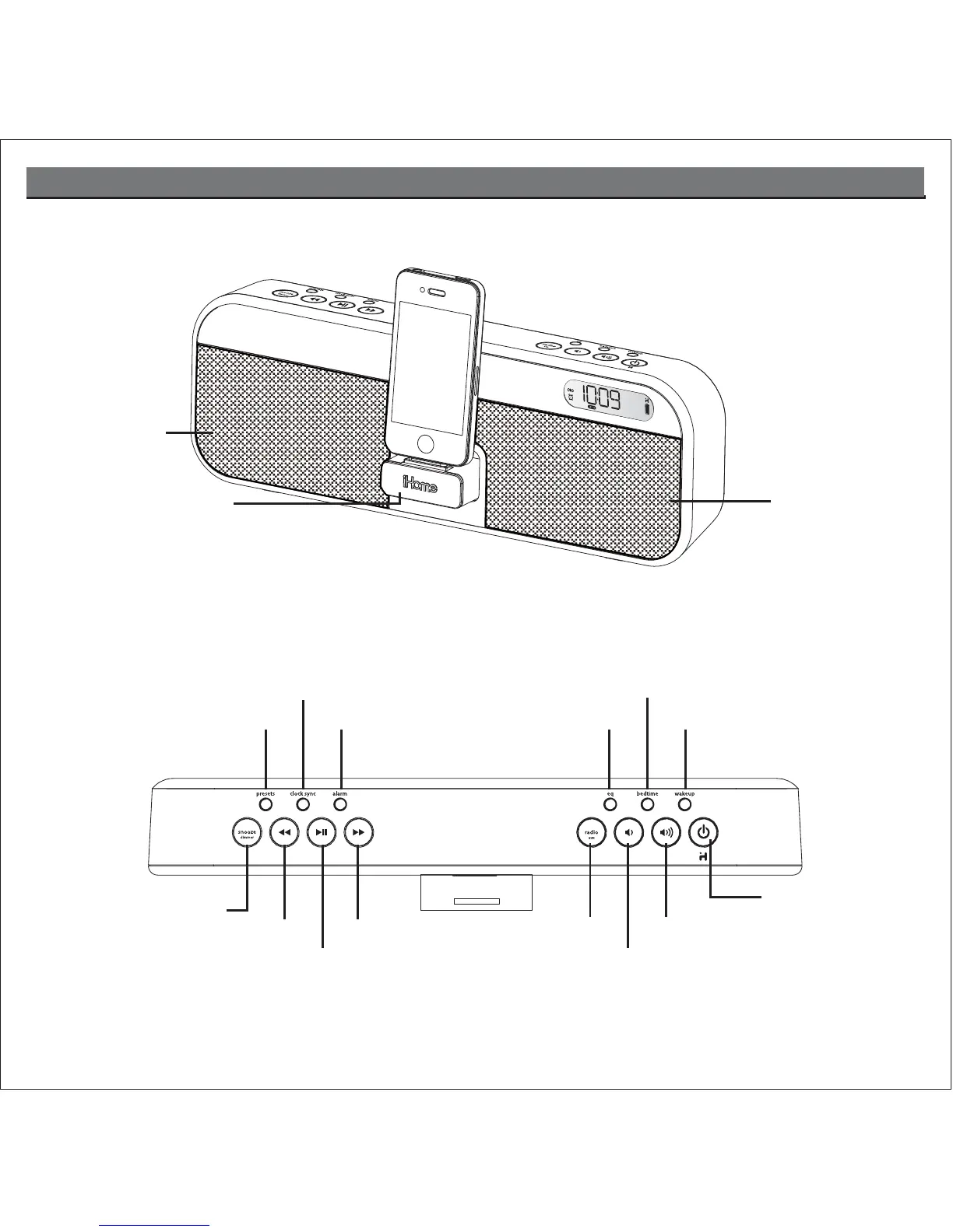 iHome ID28 - Controls and Indicators; Front Panel; Top Panel