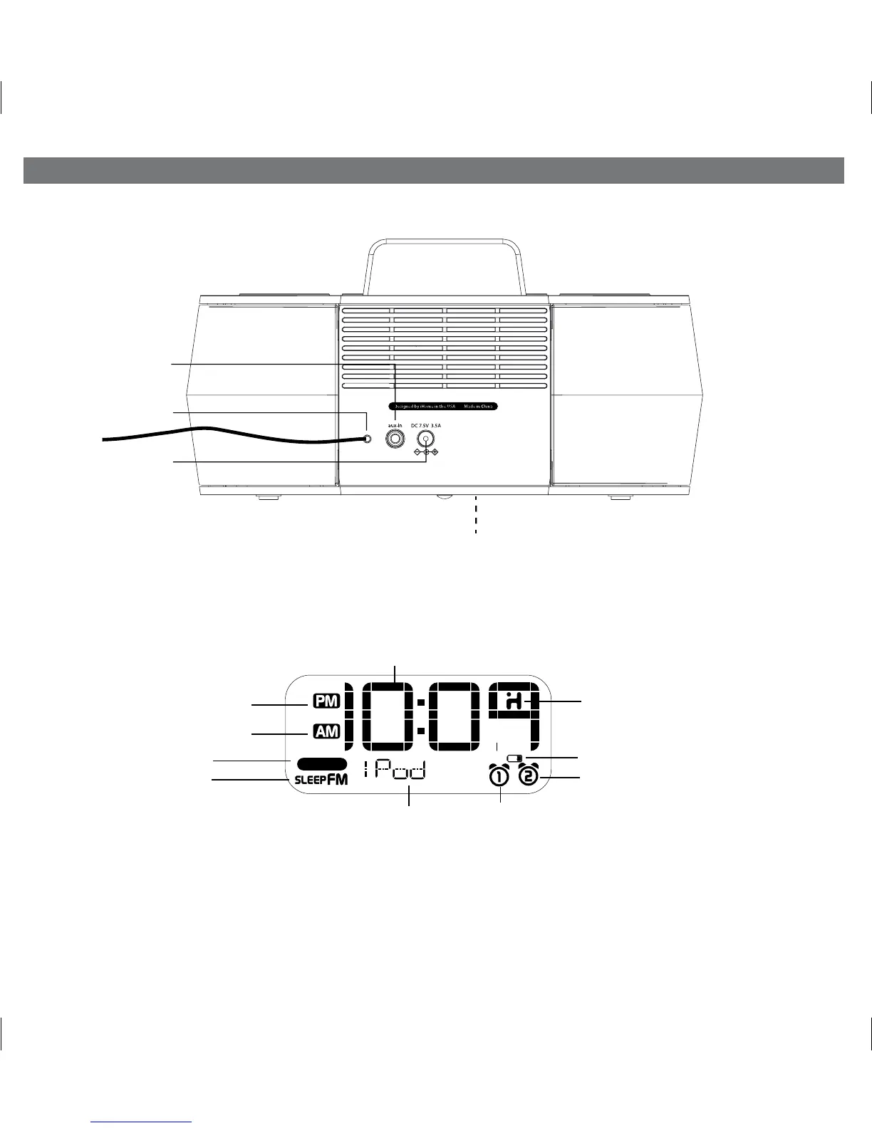 iHome iD38 - Rear Panel; Clock Display