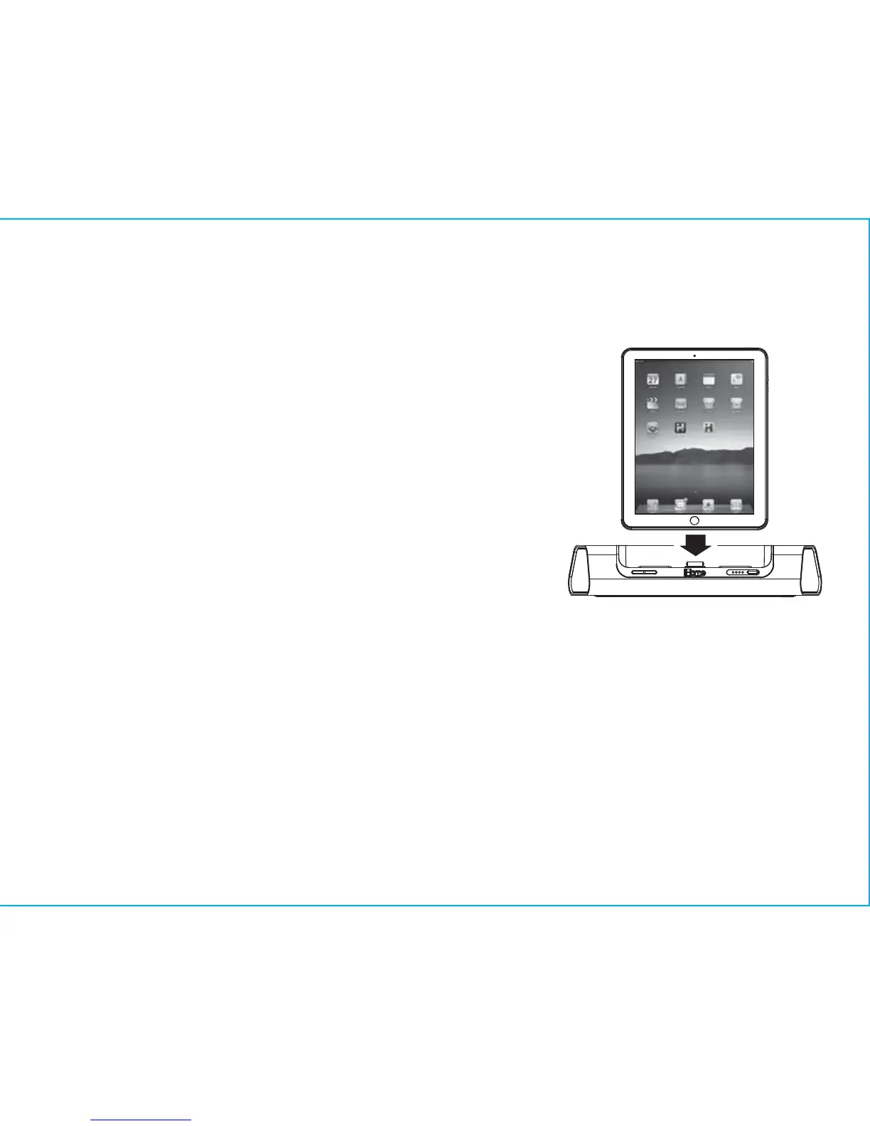 1.Gently dock an already playing iPad, iPhone or iPod. The unit will power