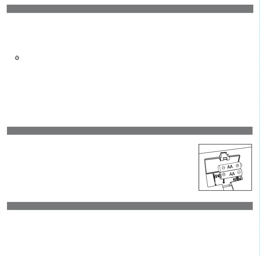3. Insert 2 AA batteries, checking that the polarity (+ and – ends of the battery) matches the