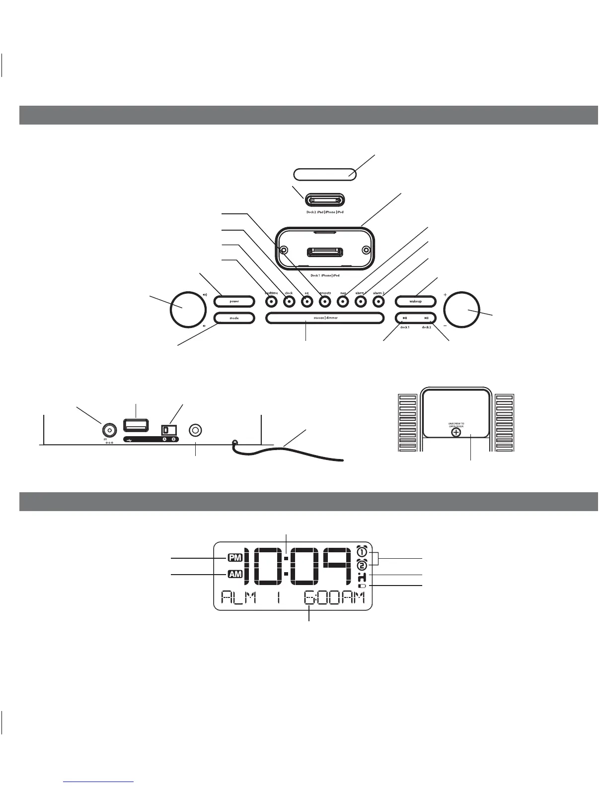 Dock 1 Play/Pause Button Dock 2 Play/Pause Button