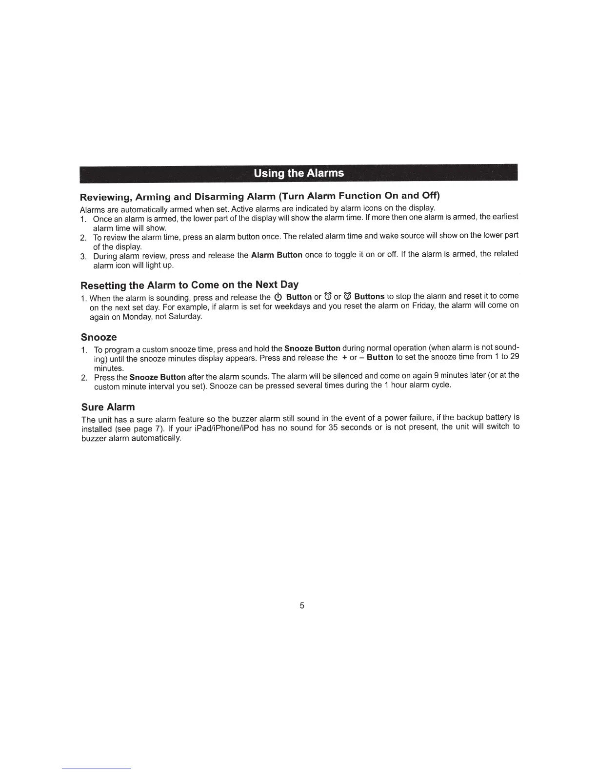 The unit has a sure alarm feature so the buzzer alarm still sound