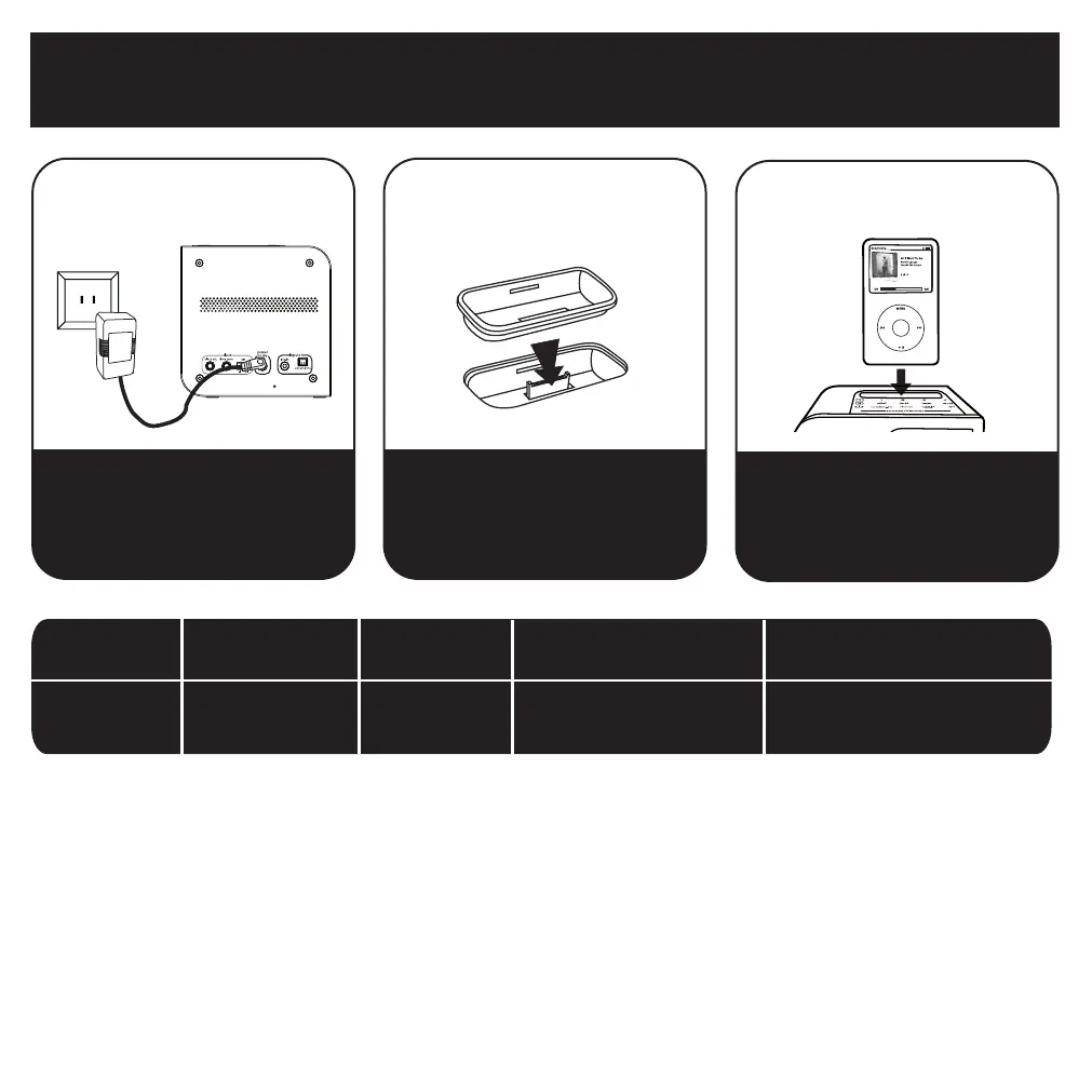 NOTE: If the insert for your iPod isn’t listed, please visit an Apple store or www.ihomeaudio.com