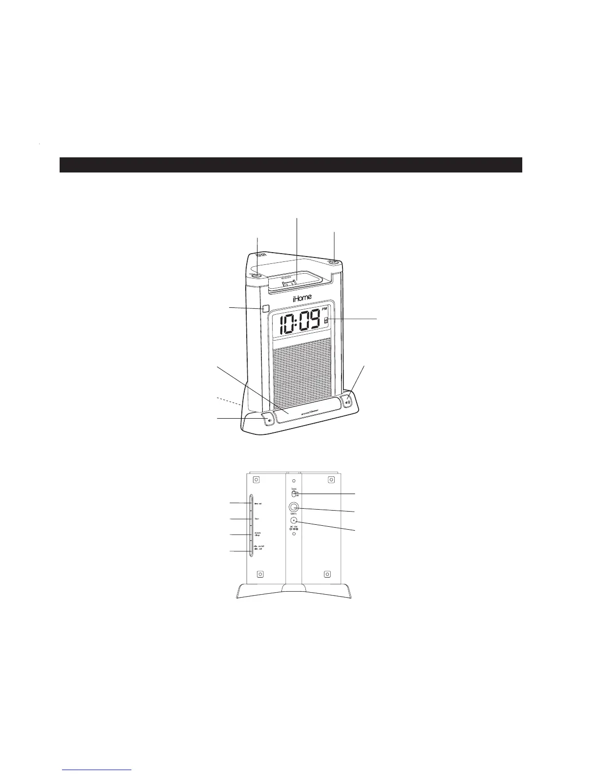 iHome iH4 - Device Controls and Indicators; Front Panel Controls Overview; Back Panel Ports and Switches
