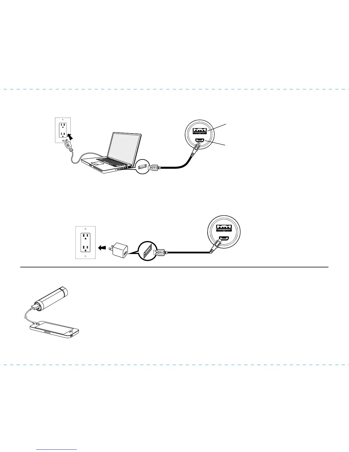 included) or other USB power source. The Battery Charge LED on the Power Bank flashes blue
