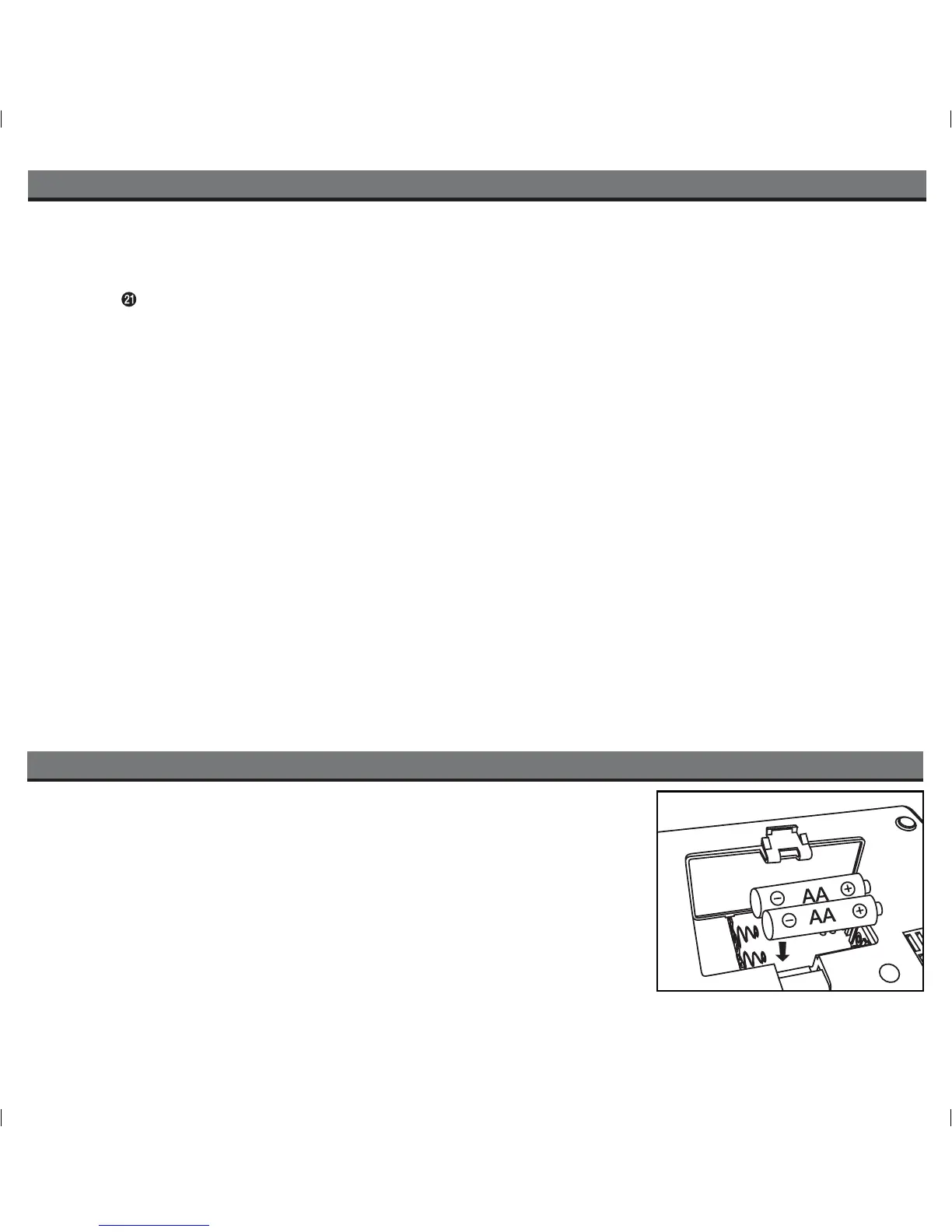 Open the battery compartment cover located on the bottom of the unit. Insert 2 “AA” batteries