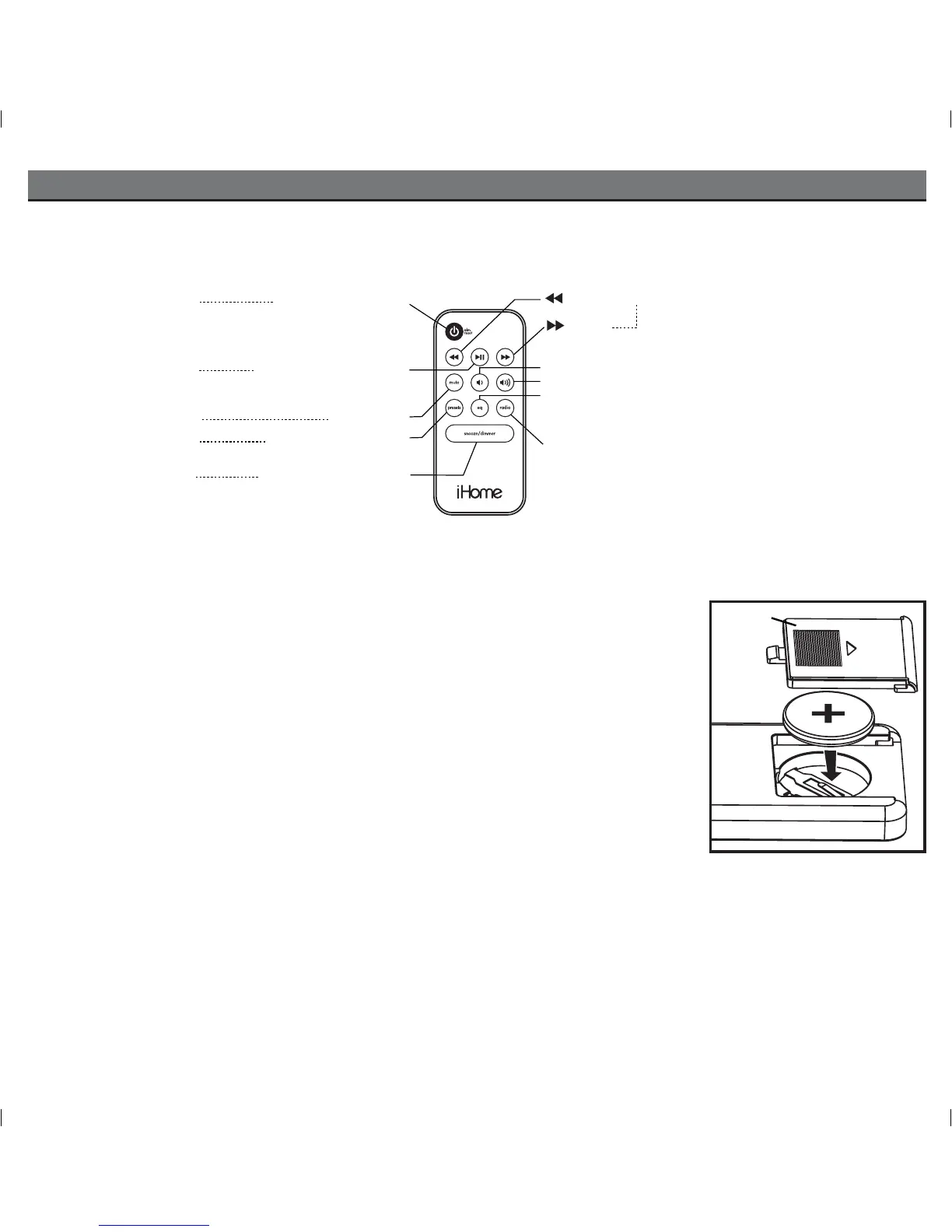 The Remote Control controls basic functions on the iH6 and certain iPod