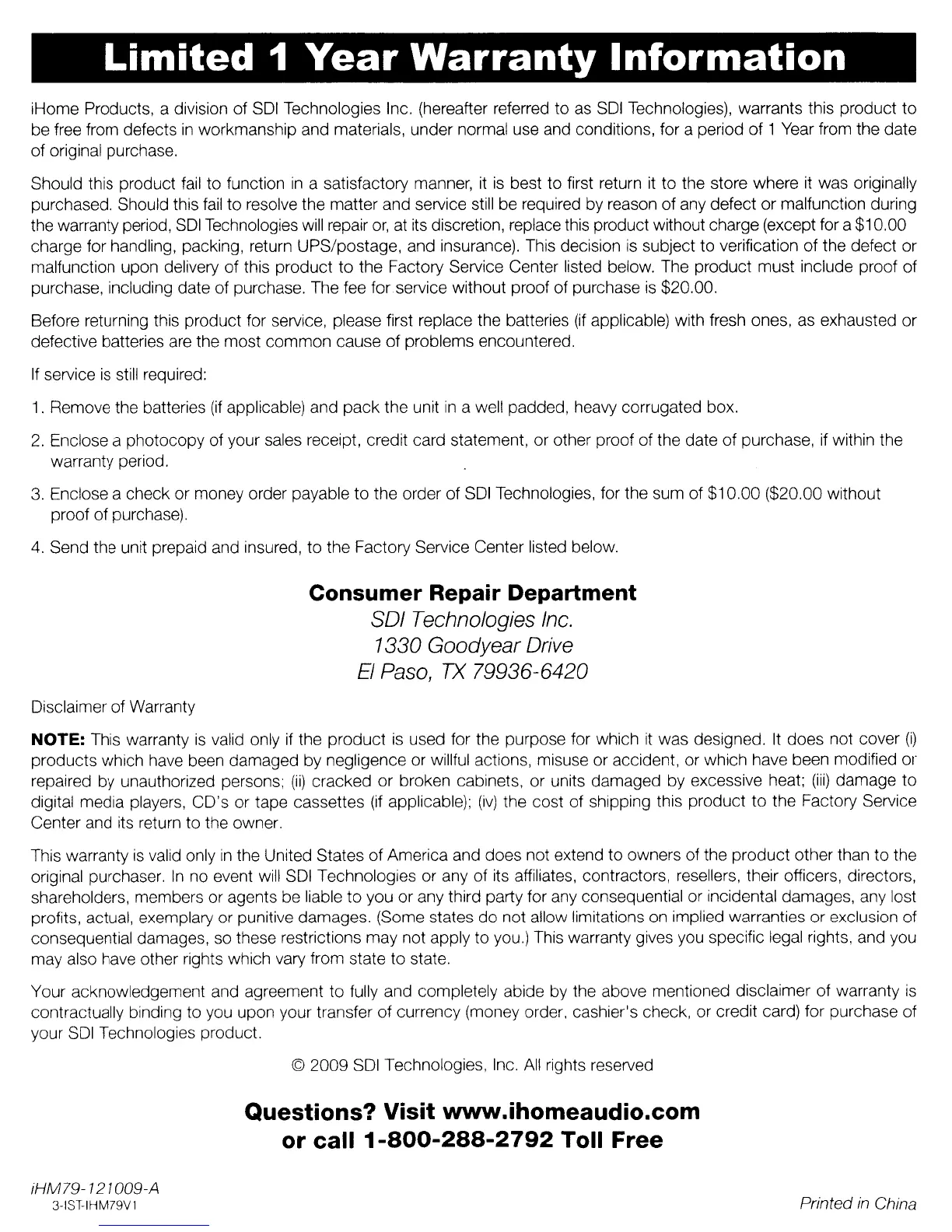 Send the unit prepaid and insured, to the Factory Service Center listed below.