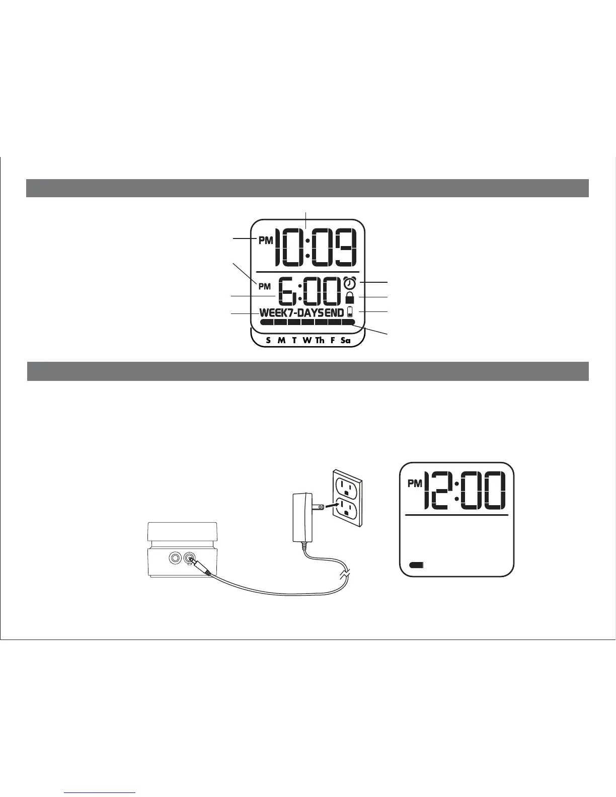 working wall outlet that is not controlled by a wall switch. The display on the unit will show 12:00