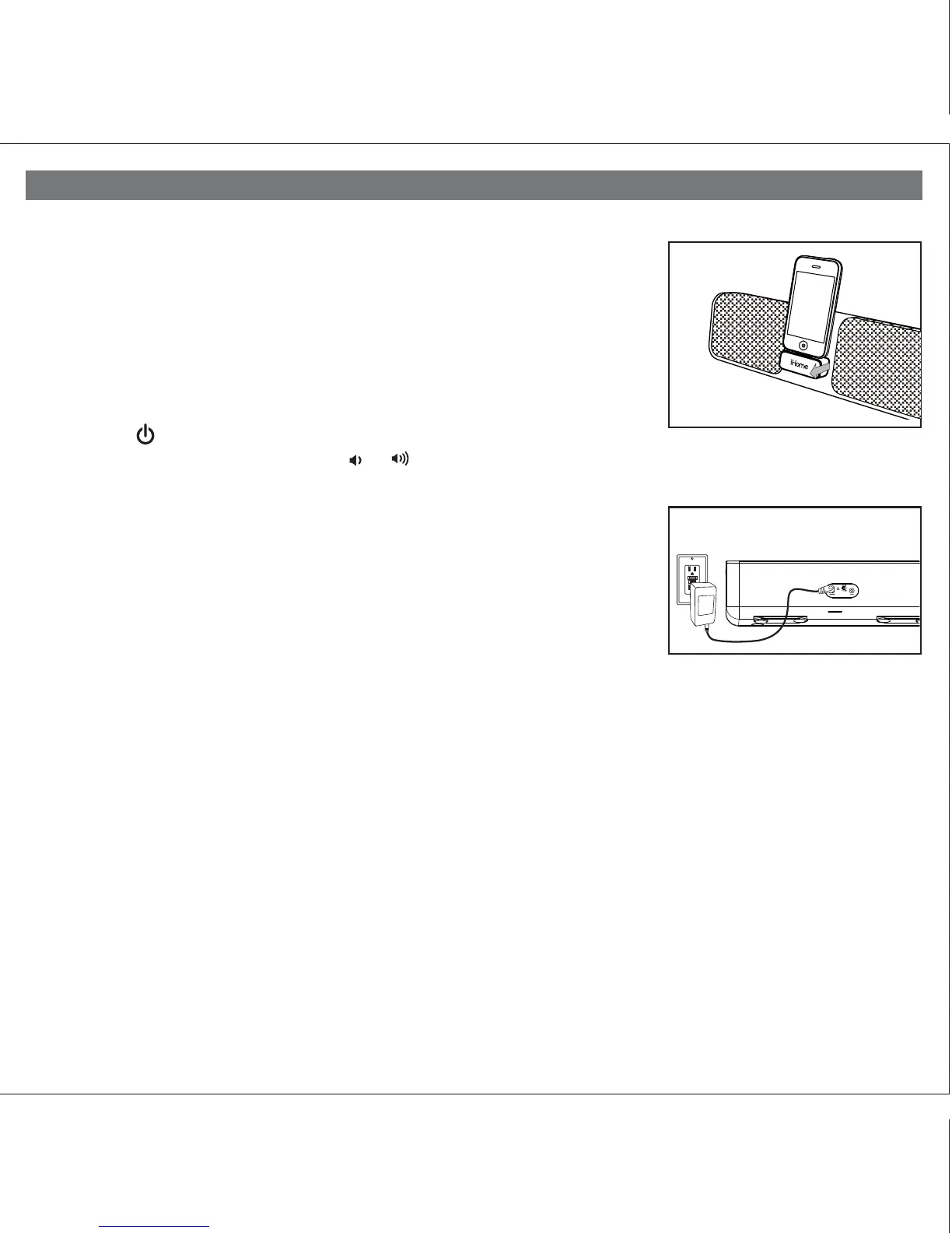 Note: Docking an already playing iPhone or iPod will also turn the iP46 on.
