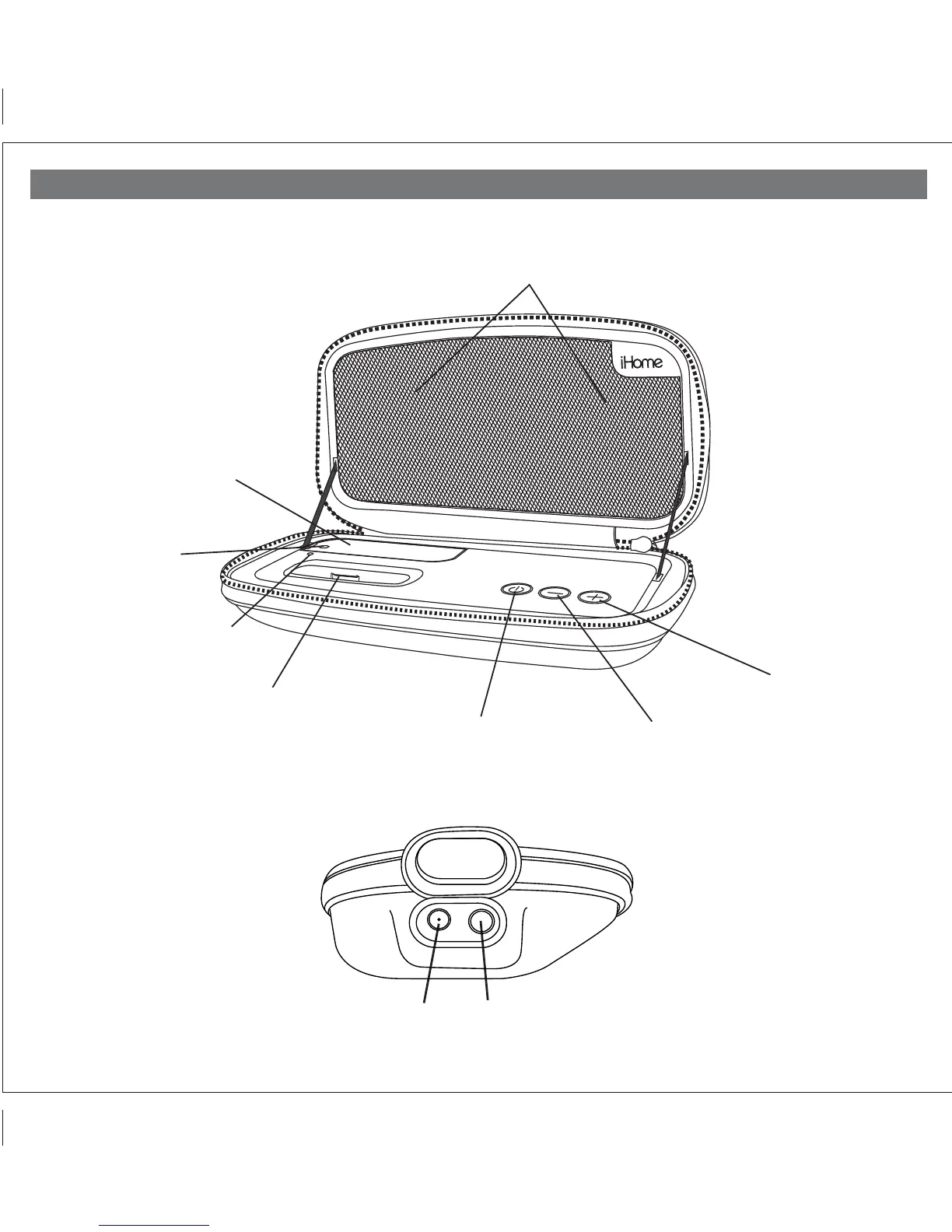 iHome iP57 - Controls and Indicators; Front Panel; Side Panel