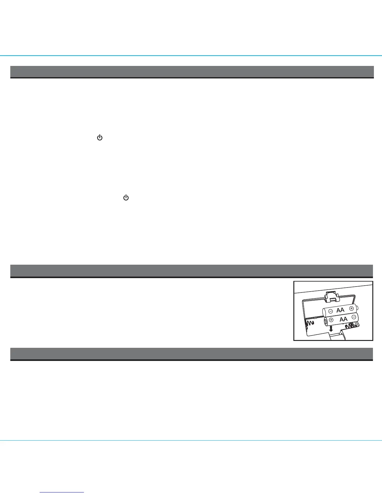 Open the battery compartment cover located on the bottom of the unit. Insert 2 “AA” batteries as indicated.
