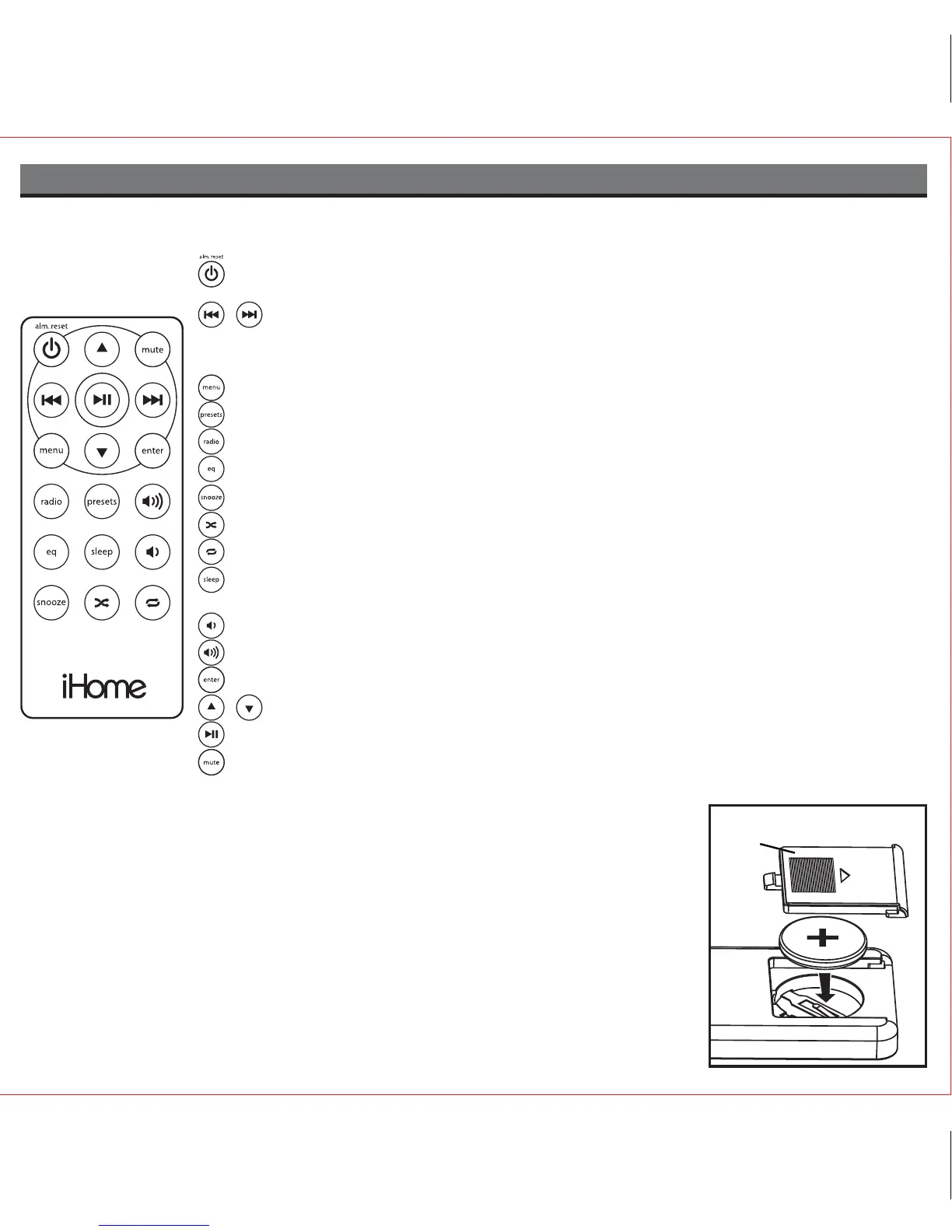 The Remote Control controls basic functions on the iP97 and certain iPhone®/iPod® functions when the iPhone®/iPod®