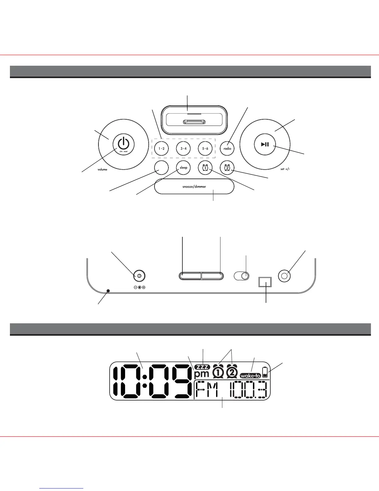 Radio / Alarm Time / iPod Display