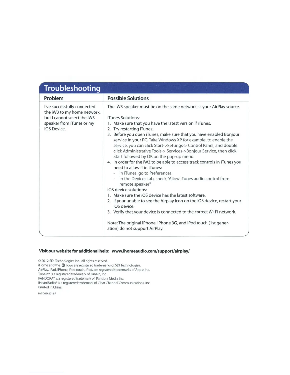 website for additional help: www.ihomeaudio.com/support/airplay/