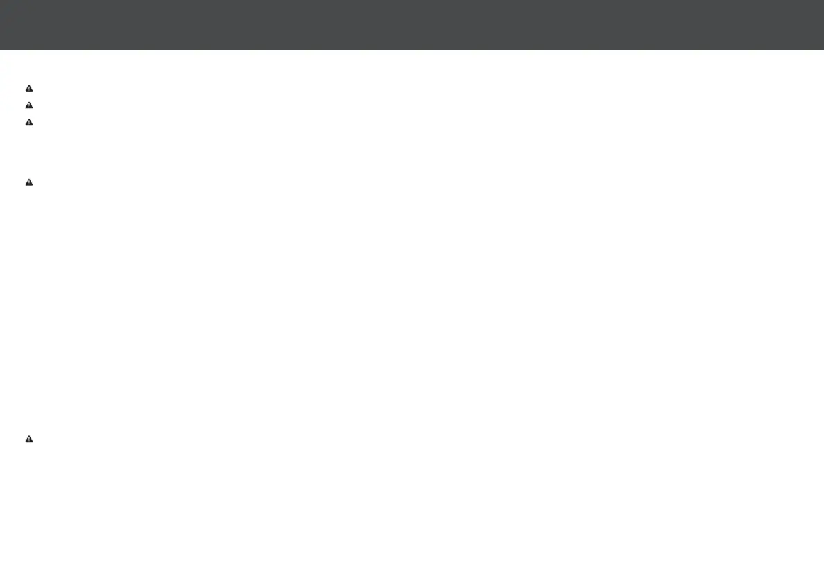 • Do not attempt to charge damaged or leaking battery packs. If battery leakage occurs, thoroughly wash any aected skin, making sure to keep battery acid