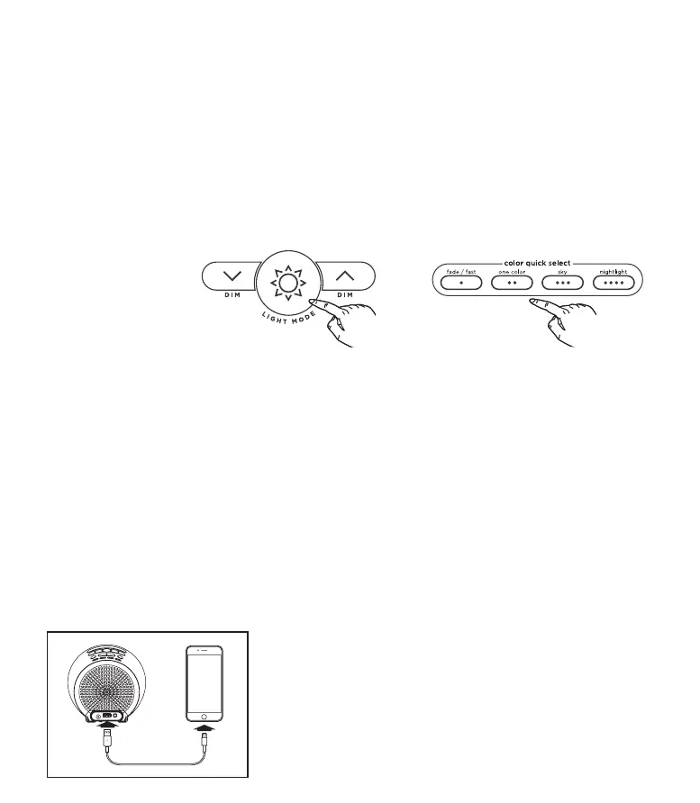 5. Press – or + Buttons to select a wake-to light mode: Dawn, Fade, Fast, Stop, Beat, Sky, or Nite.
