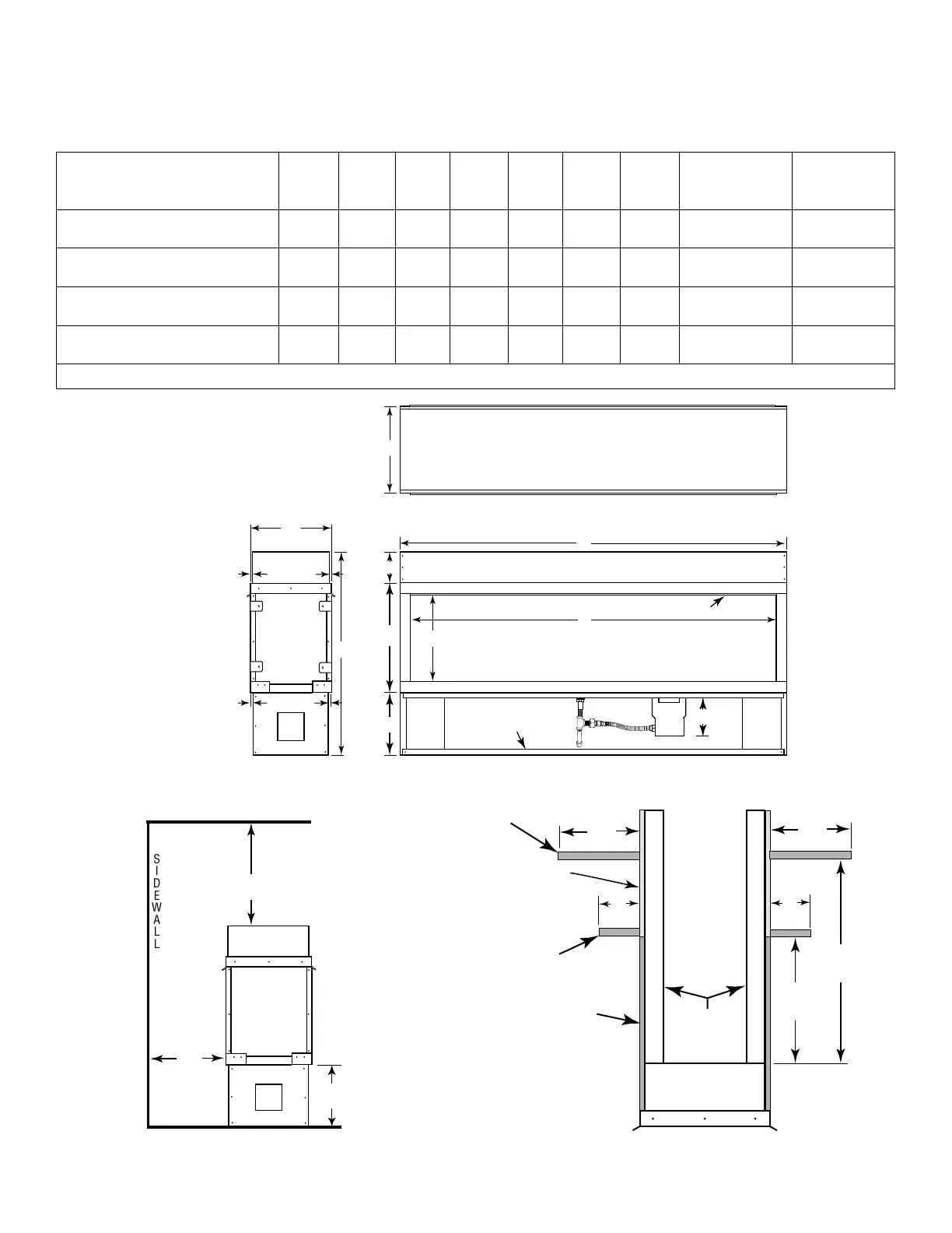 Table 5 - Fireplace dimensions and clearances.