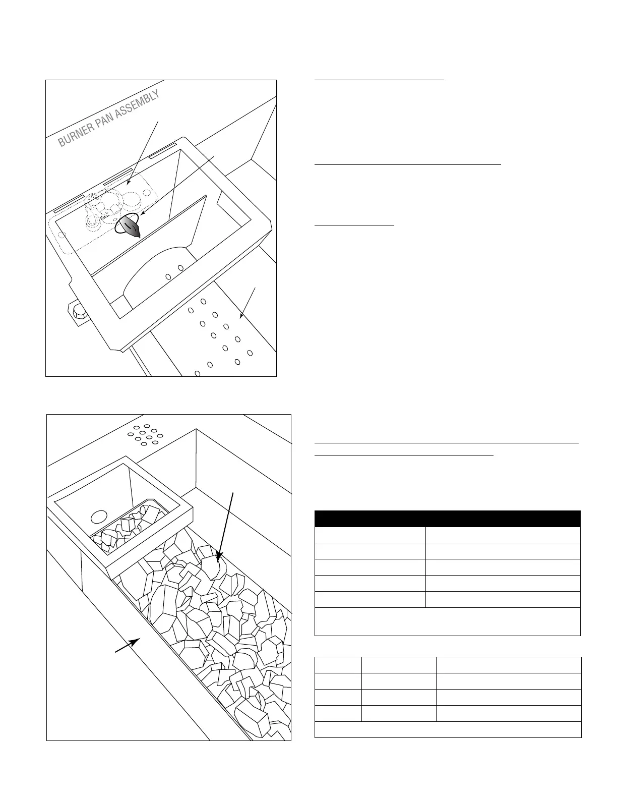 stalled into the burner trough and burner pan. Use the table below
