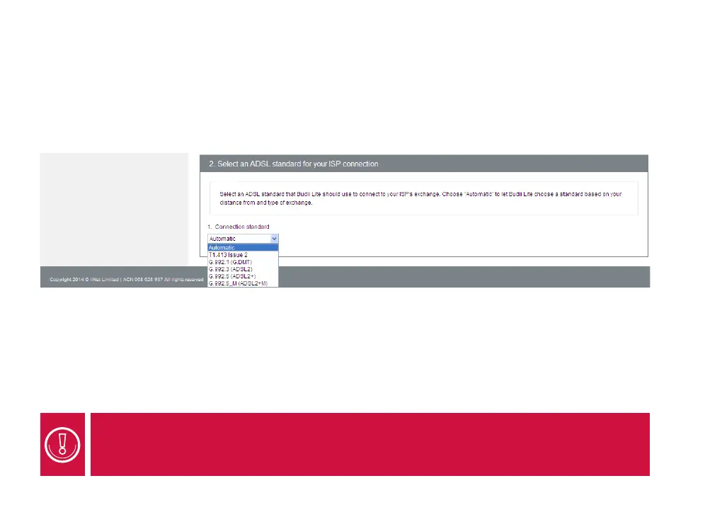Select an ADSL standard for your internet connection