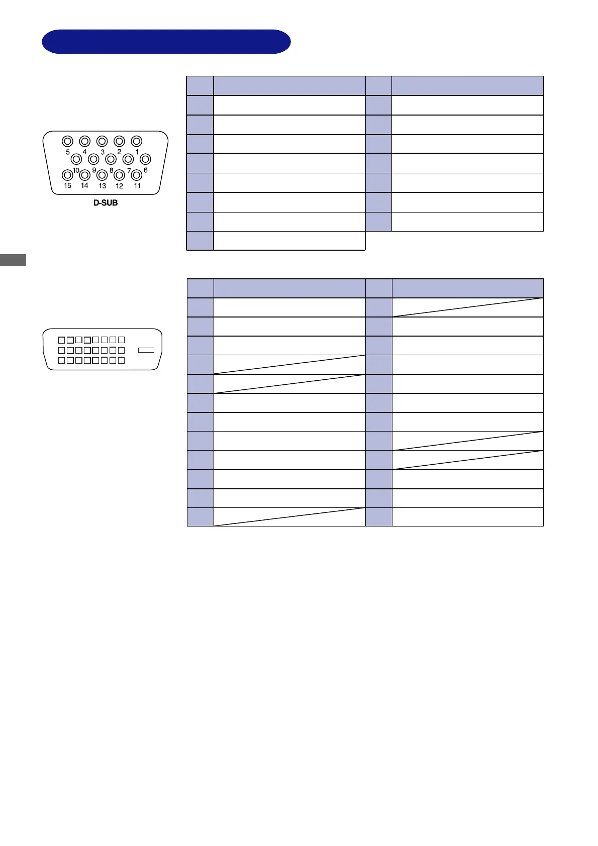 Iiyama ProLite E1900S - CONNECTOR PIN ASSIGNMENTS; D-Sub Connector Pin Configuration; DVI-D Connector Pin Configuration