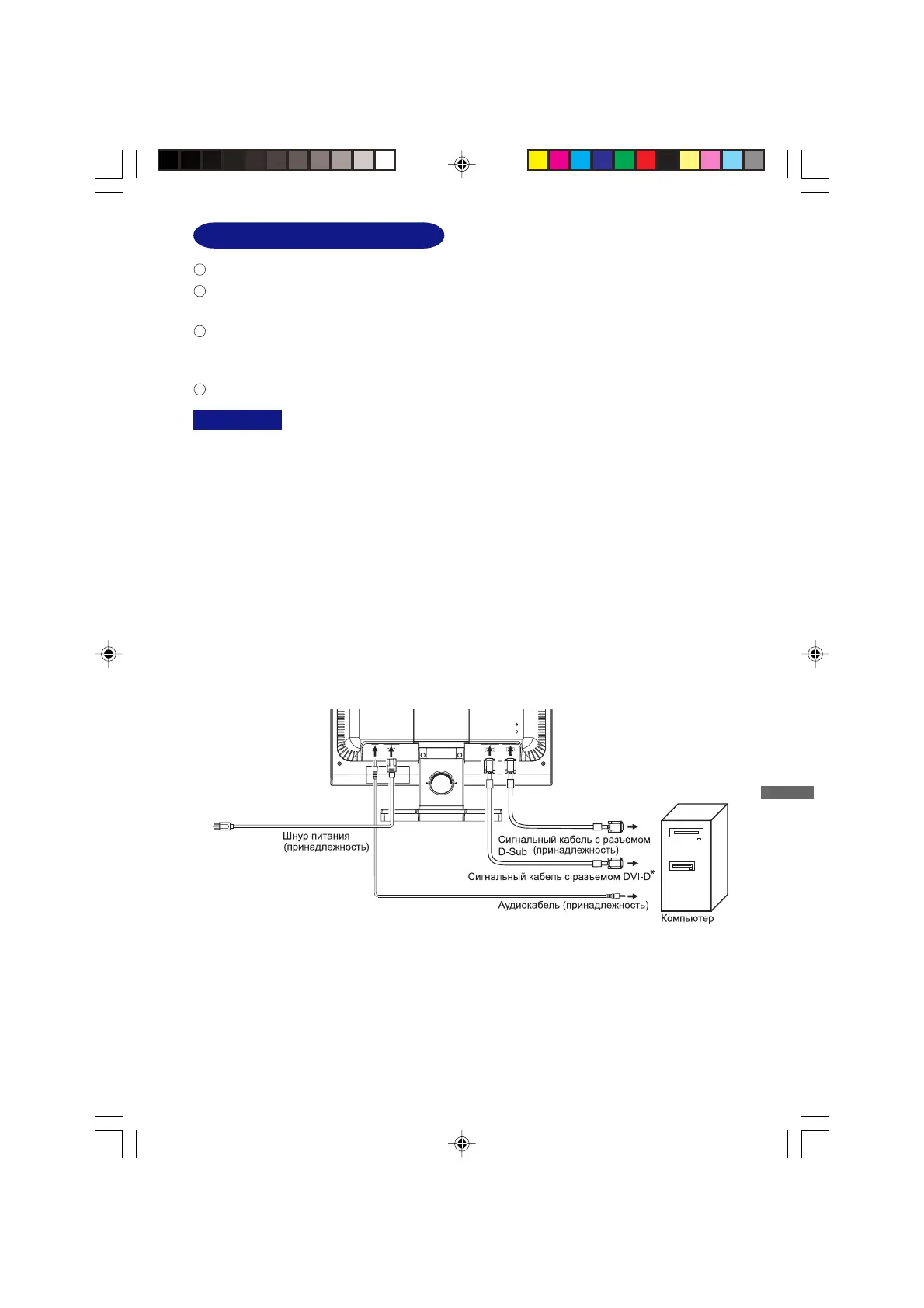 Подключите компьютер к монитору с помощью сигнального кабеля. См. рис. НАЗНАЧЕНИЕ
