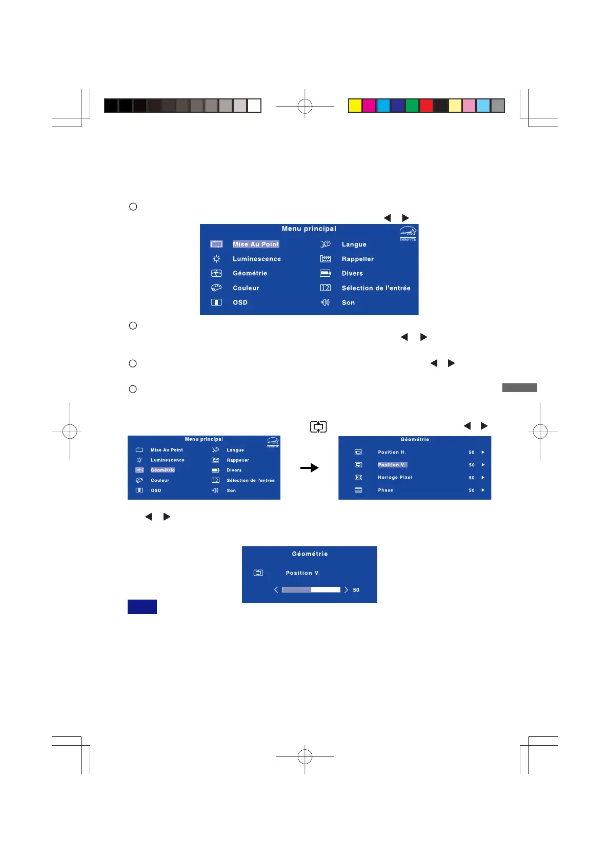/ pour corriger la position verticale. La position verticale de l’image entière doit changer
