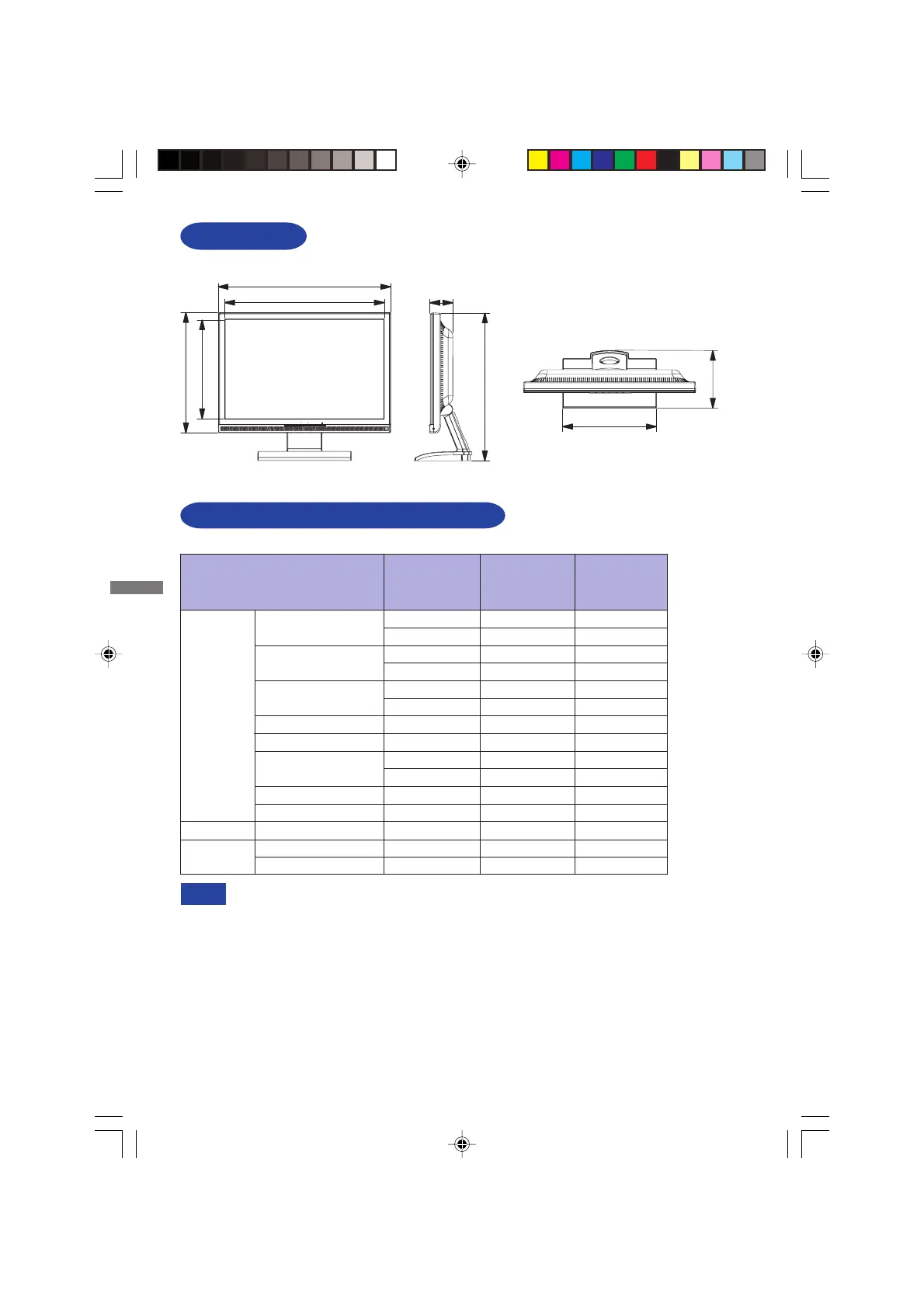 Iiyama ProLite e2200ws - Dimensions; Fréquences de Synchronisation