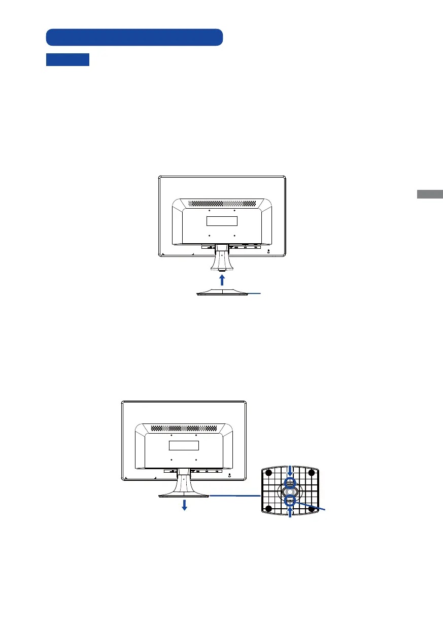 Hold the monitor and push the Stand-Base until it clicks and is secure.