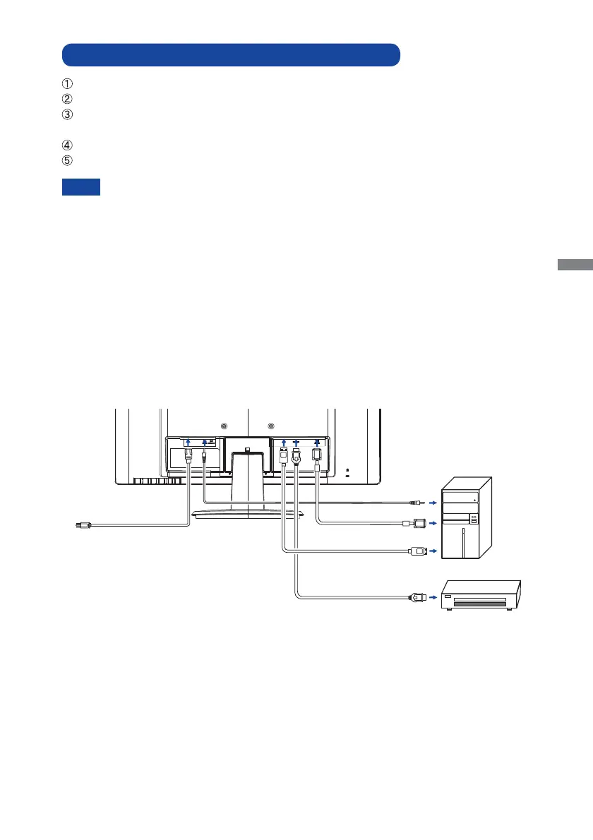 Connect the monitor to the audio equipment with the Audio Cable for computer when using the