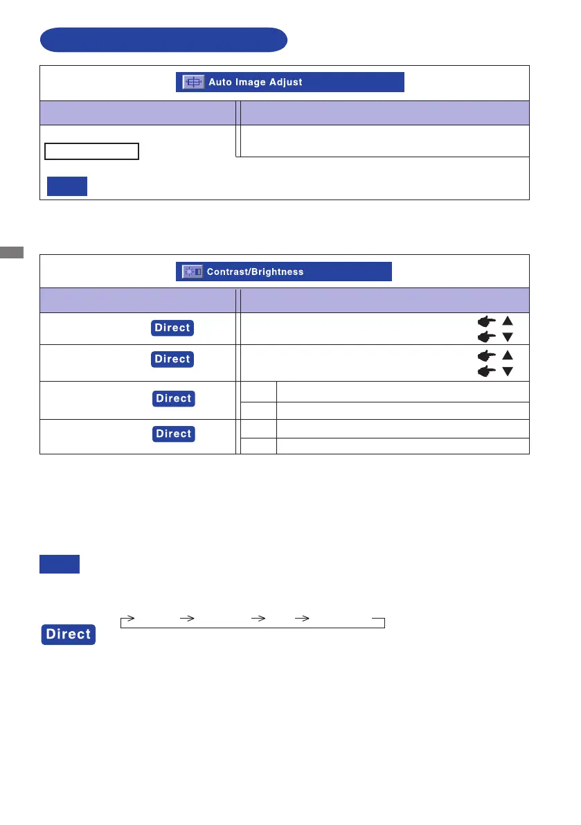 Contrast, Brightness,ACR and ECO Mode are switched as follows by pressing the /Button