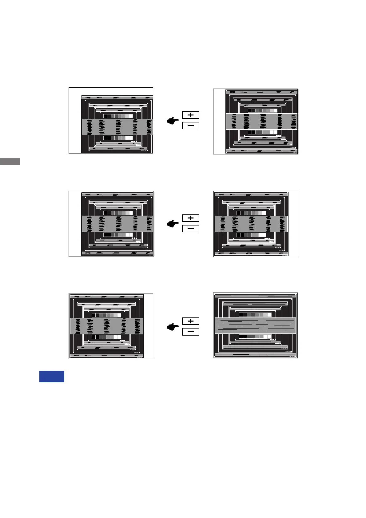 1) Adjust the H.Position so that the left side of the picture frame will move to the left edge of