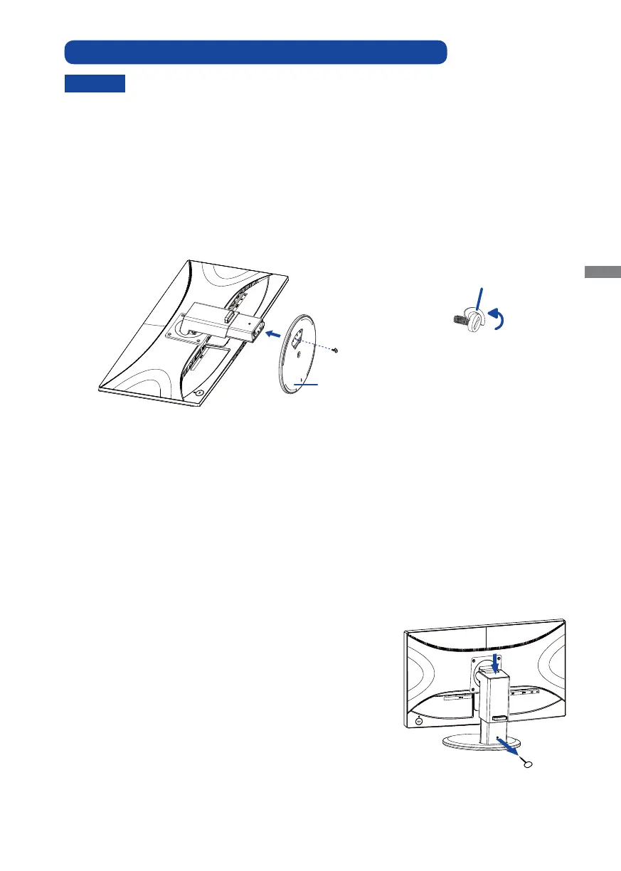 Fix the Monitor to the Stand by both screws fi rmly and then push-down knob.