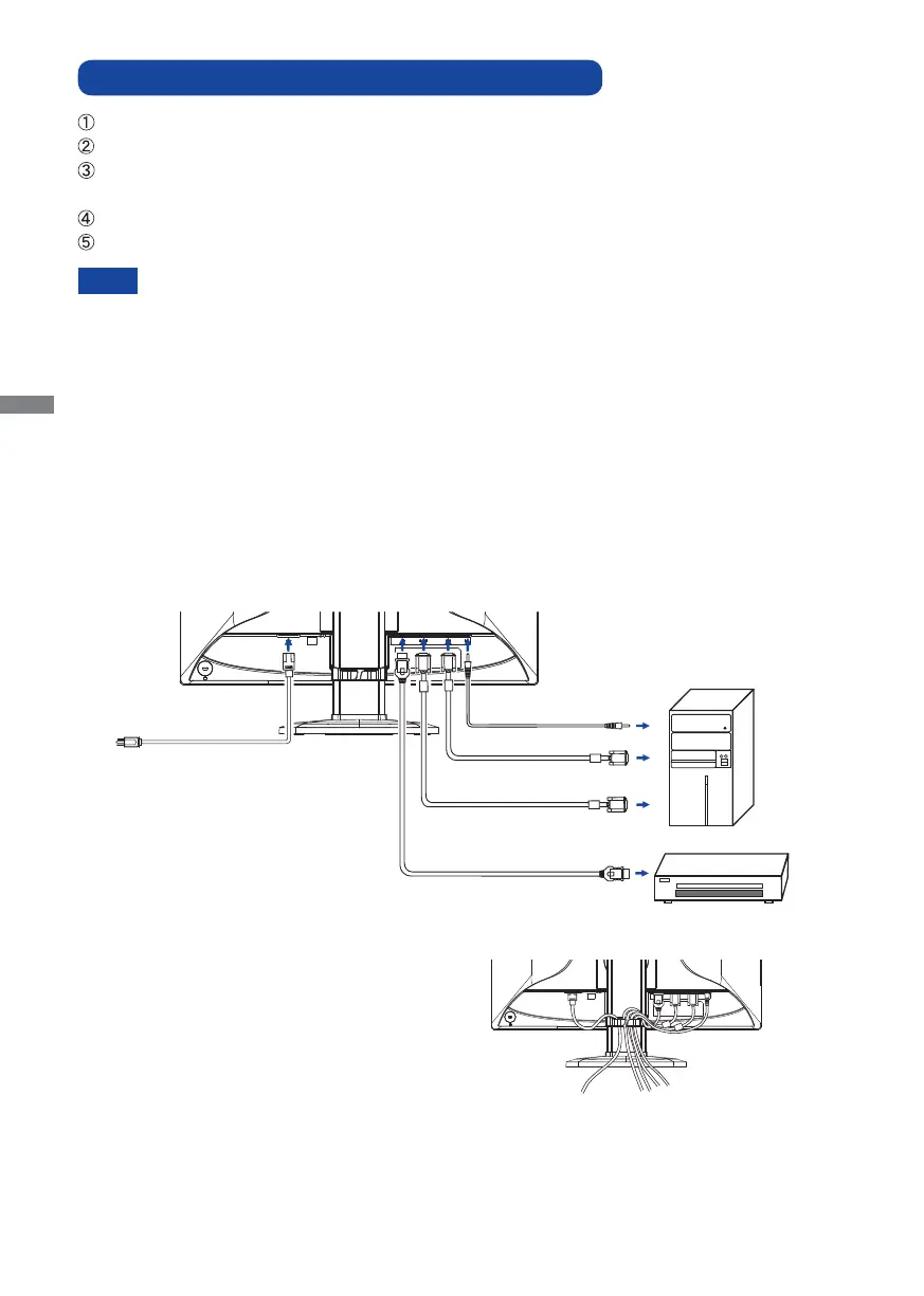 Connect the Power Cable to the monitor fi rst and then to the power supply.