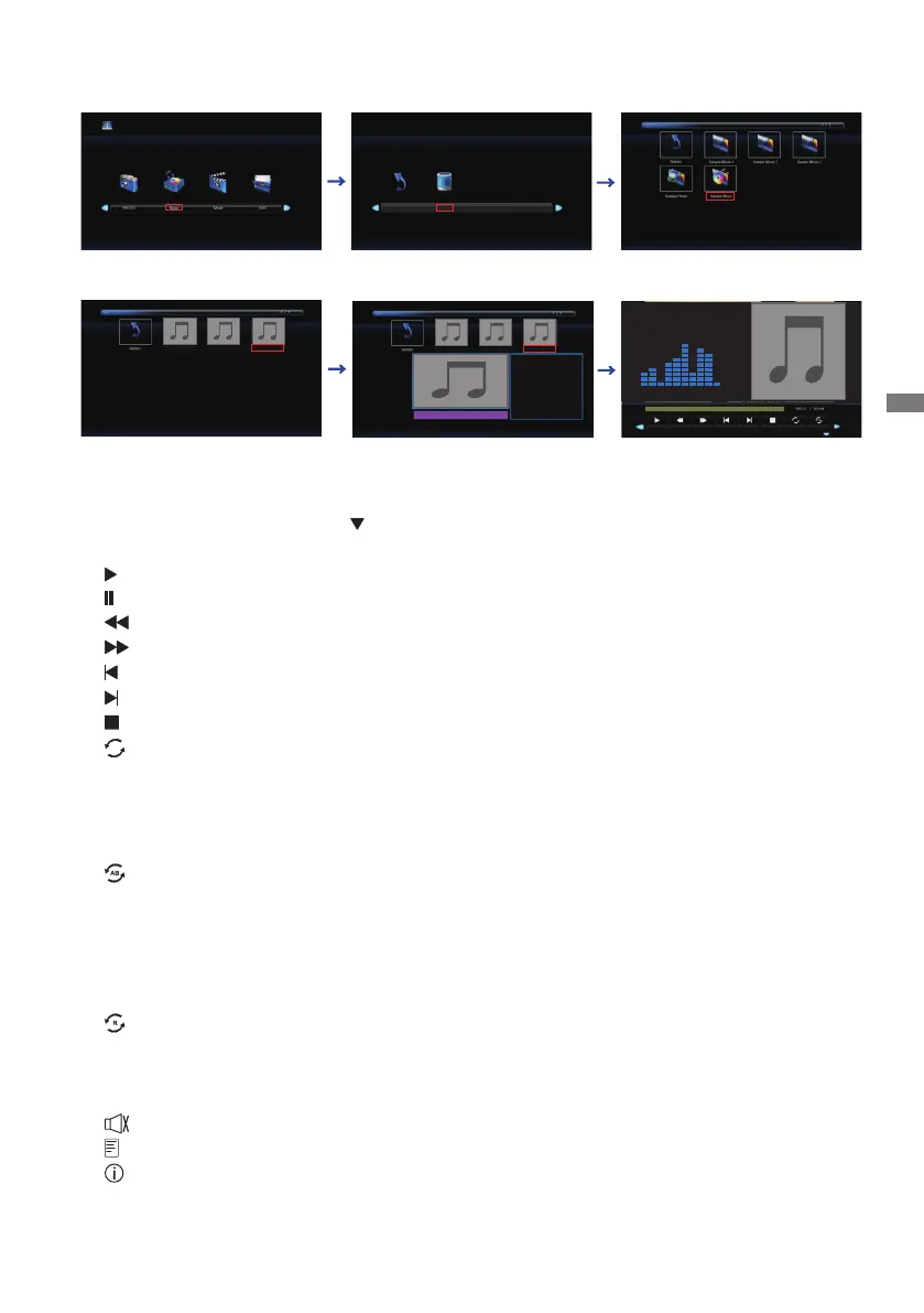 Random : Set the Random Music (Random is switched as following by pressing the OK