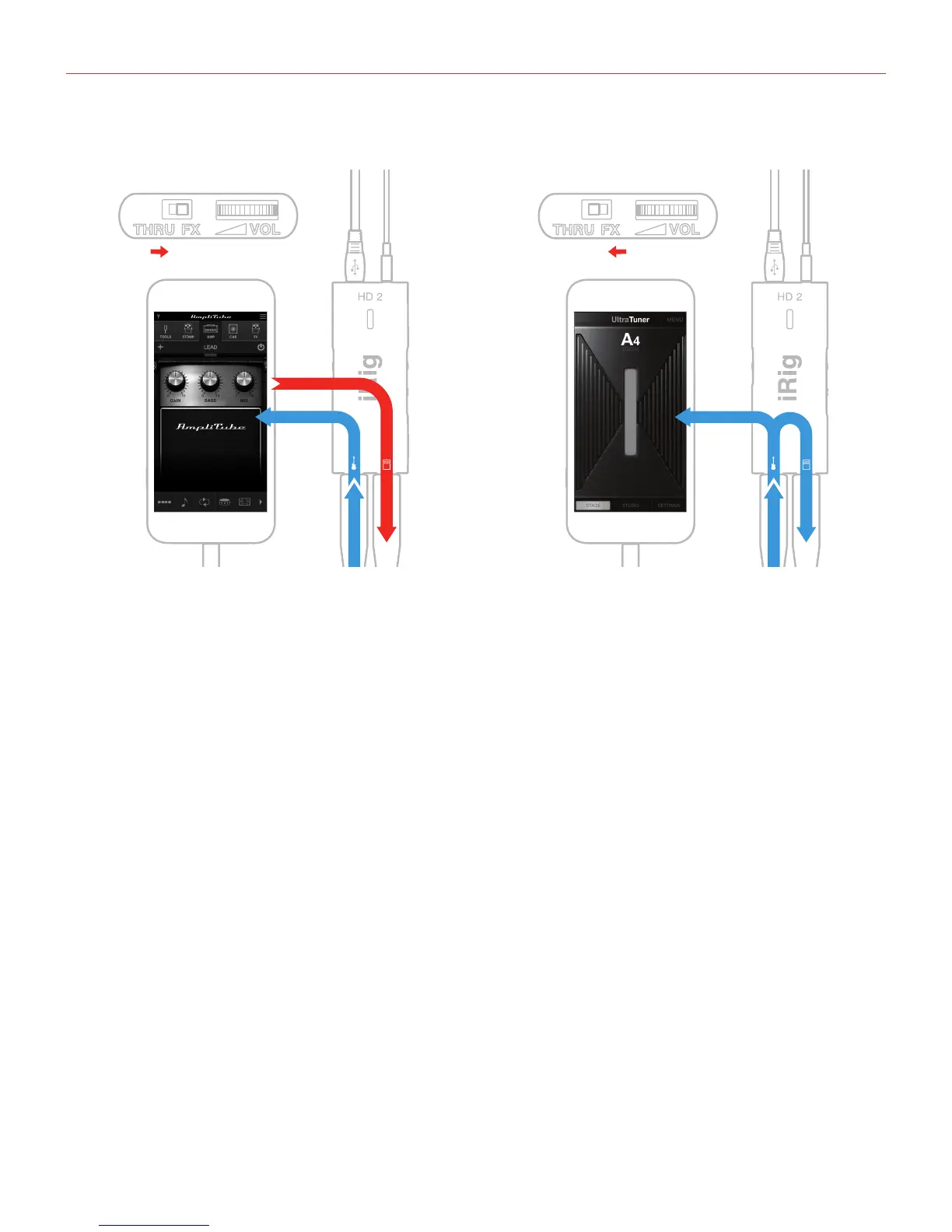 at the same time, connect iRig HD 2 to your mobile device that runs. For example, a tuner app or your favorite