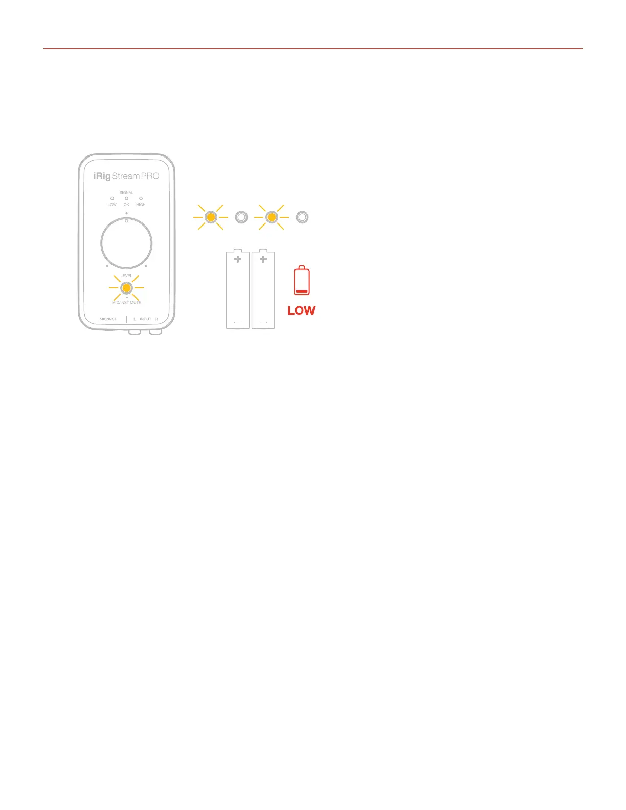 The button “Mic/Inst Mute” flashing orange: internal AA batteries are LOW! Before the 48V phantom power