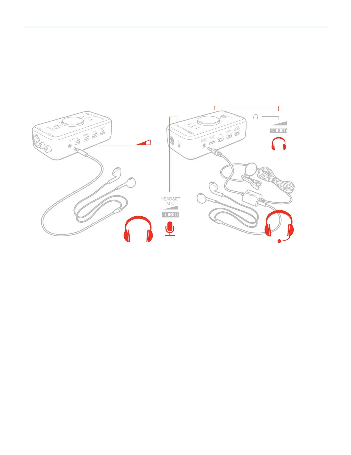 the “Headset/Phones” port and an headphones to the “Headphones” port. The headset’s microphone gain can