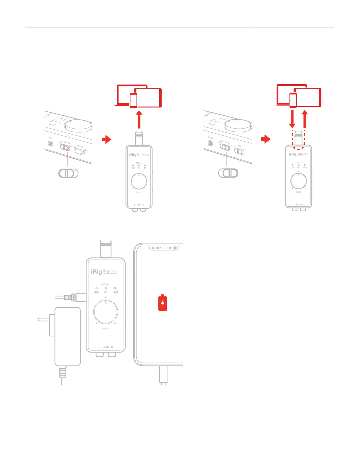 9. With the optional PSU (iRig PSU 3A), the iRig Stream can charge the connected iOS device.