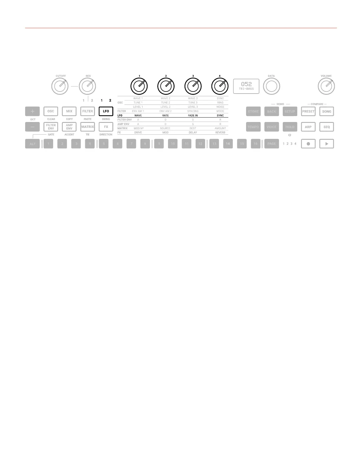 button will light. Press the LFO button again to light the 2 indicator and access the LFO 2 parameters.