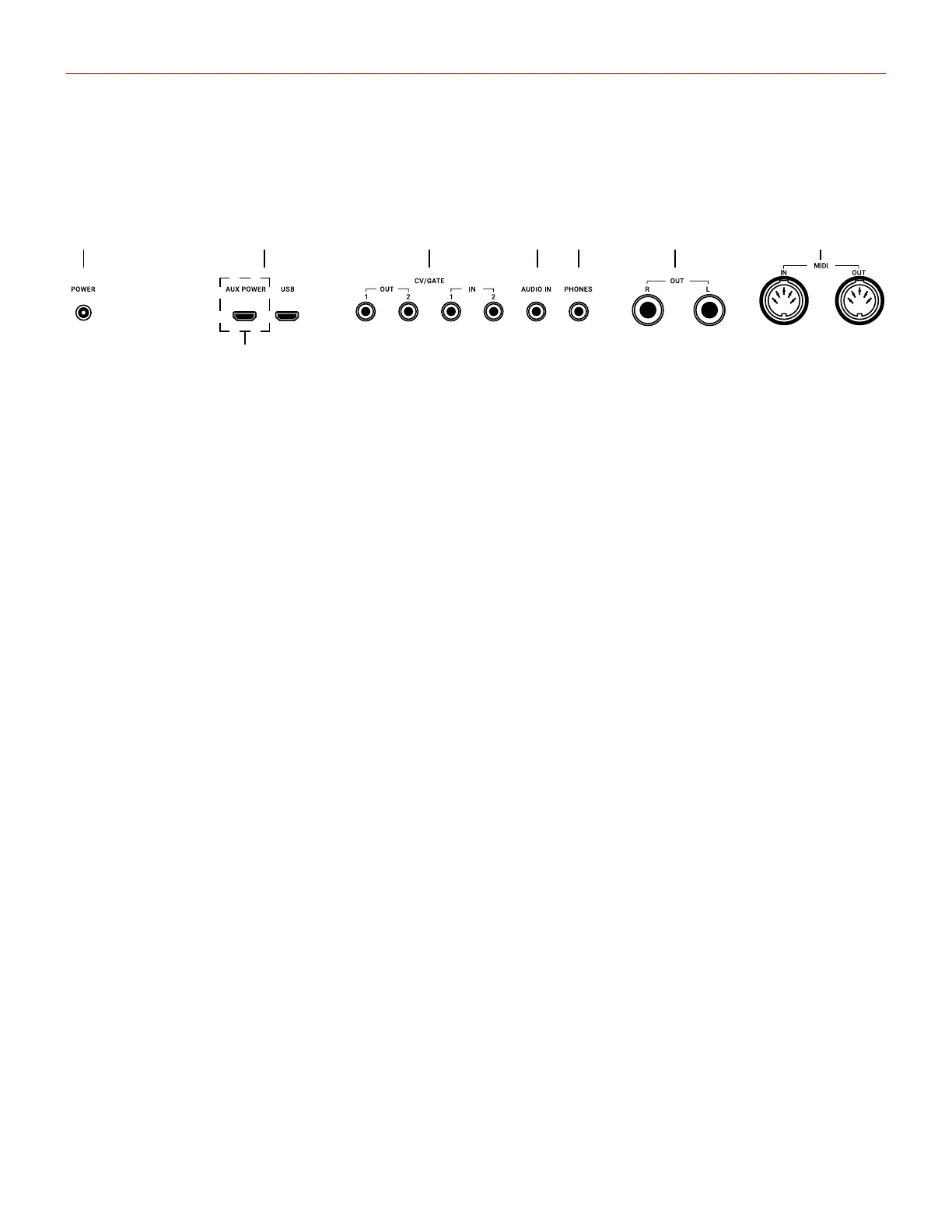 UNO Synth Pro Desktop is USB powered and includes two USB micro ports labeled USB and AUX POWER.