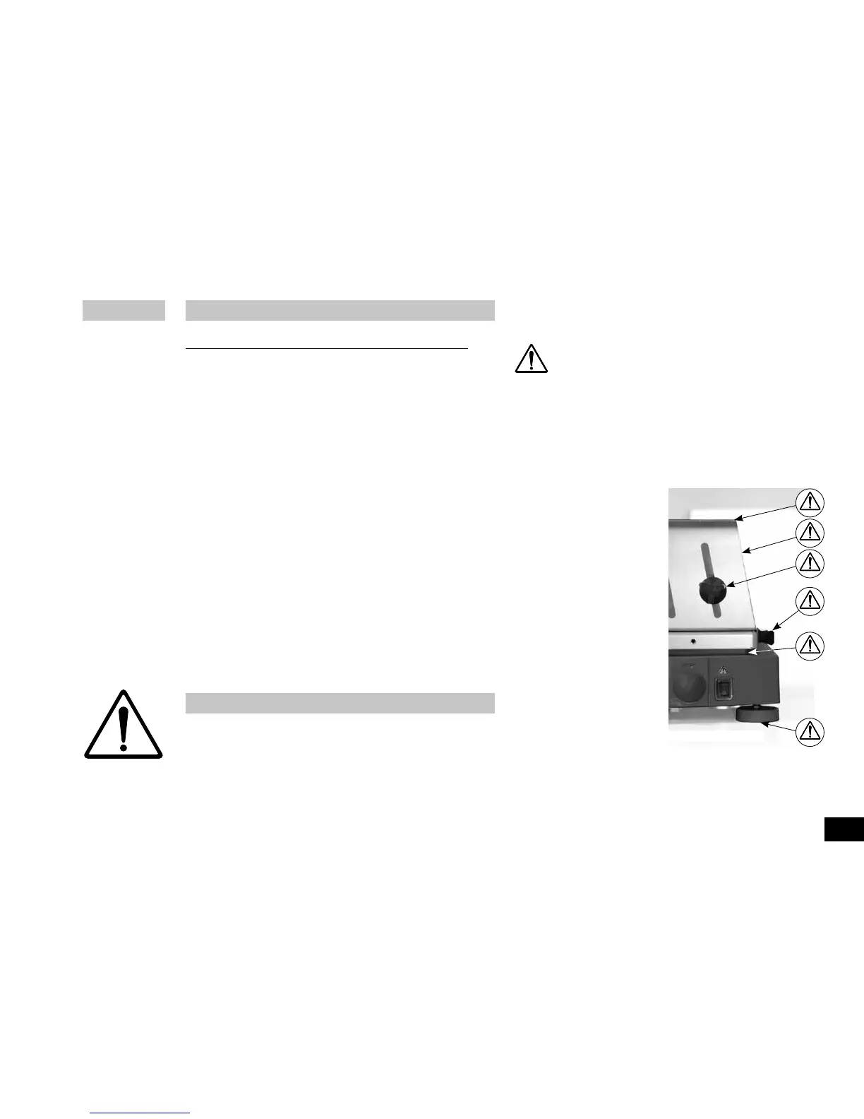 king table or support. Never touch moving parts (risk of crushing, impact