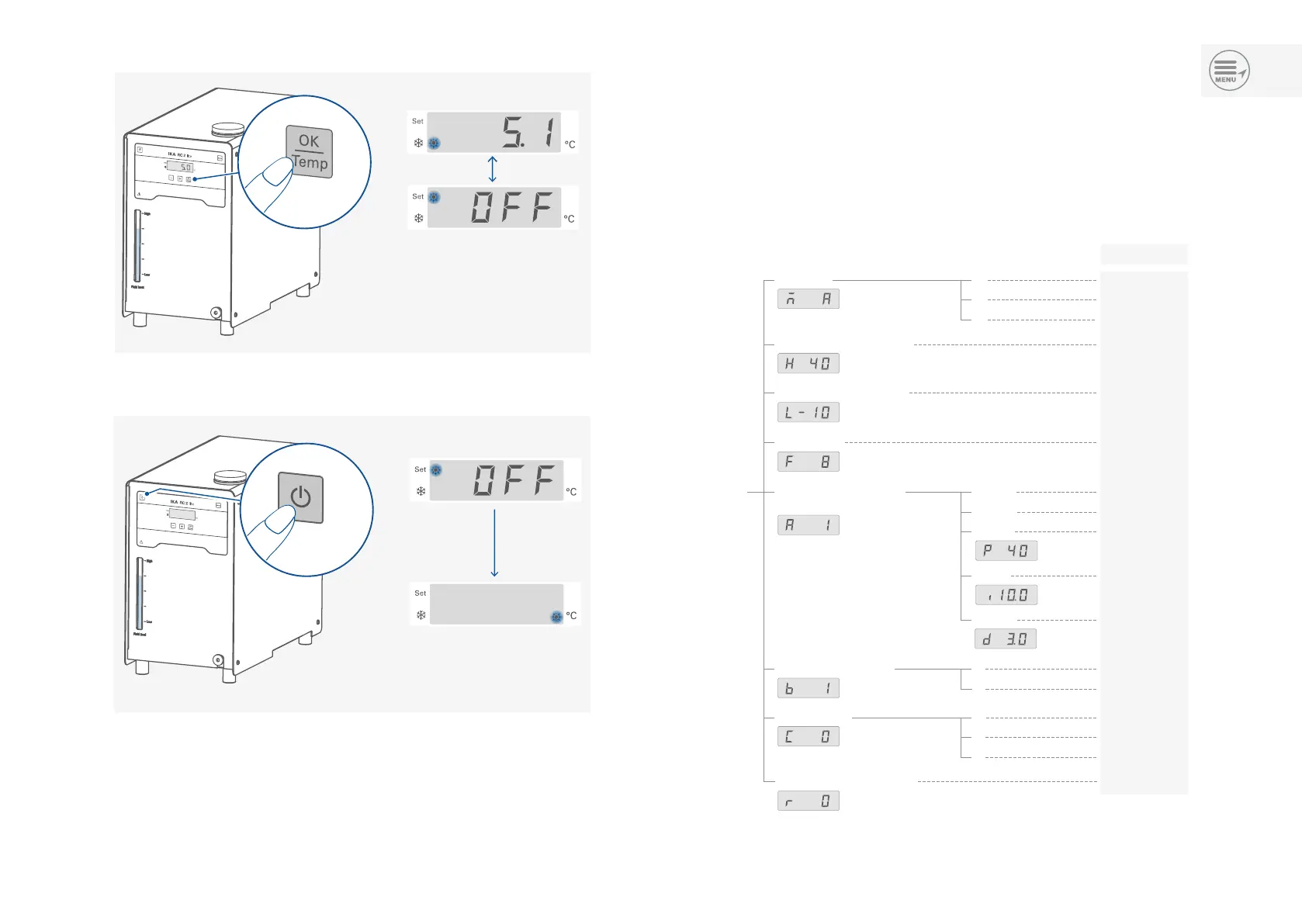 Confirm the menu settings by pressing the “OK / Temp“ button (H).