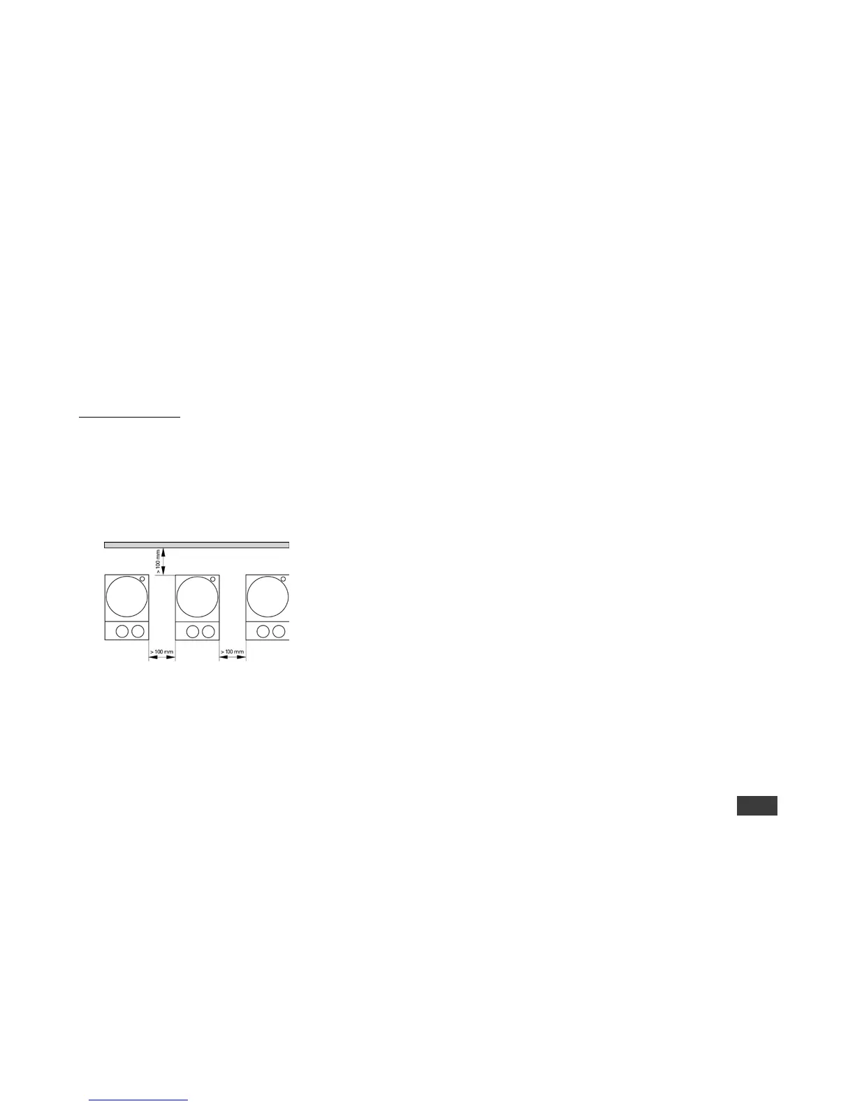 • Vær opmærksom på de mindste afstande mellem apparatet og væggen over
