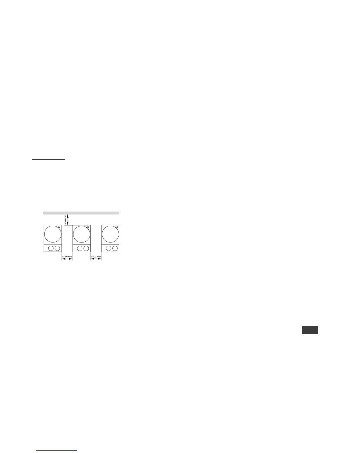 • Upoštevajte najmanjše razdalje med napravami, med napravo in steno ter nad
