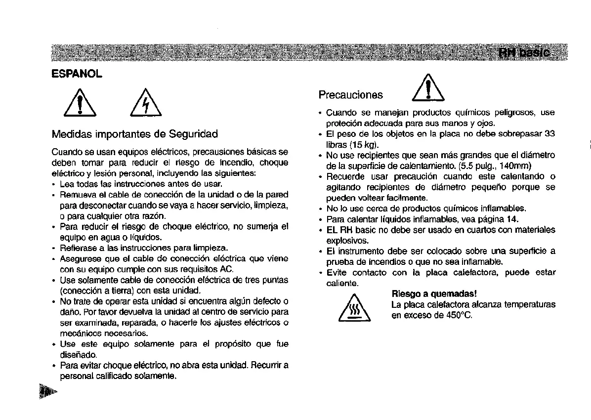 • Para calentar Ifquidos inflamables, vea pagina 14.