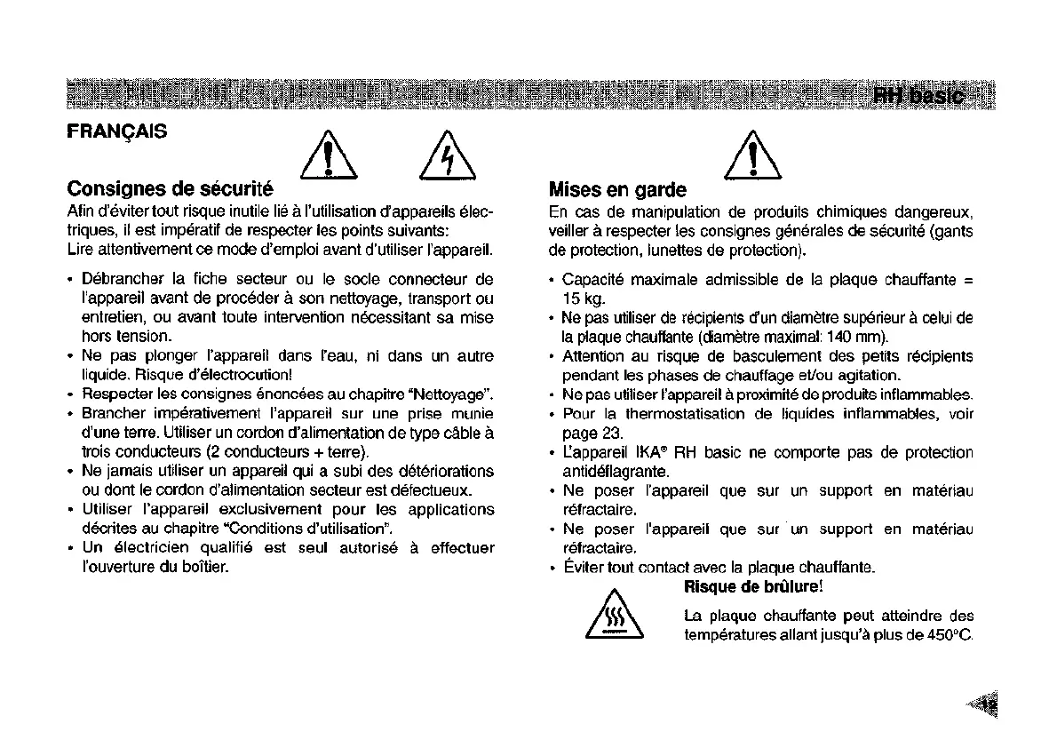 • L'appareil IKA® RH basic ne comporte pas de protection