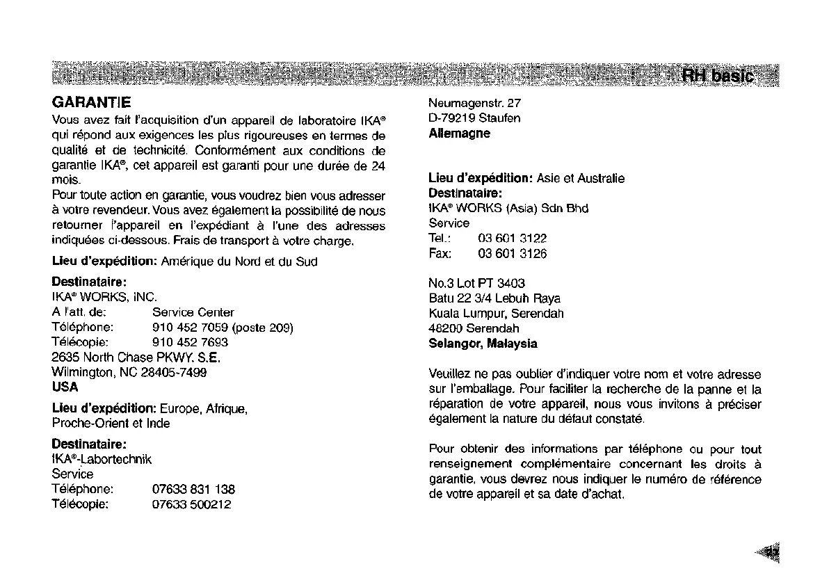 garantie IKA®, cet appareil est garanti pour une duree de 24