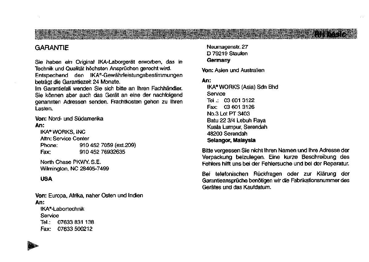 Entspechend den IKA®-Gewahrleistungsbestimmungen