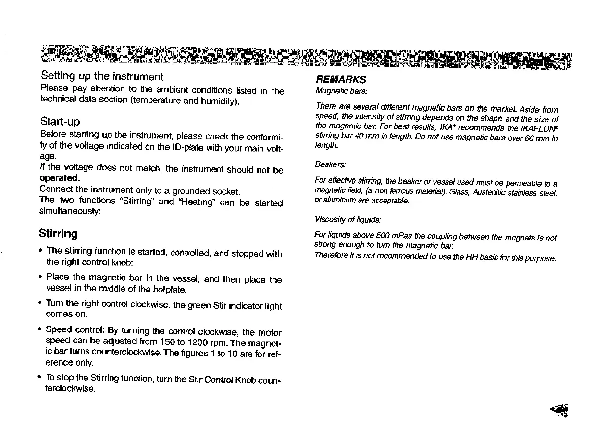 IKA RH basic - Setting up the instrument; Start-up; Stirring; REMARKS